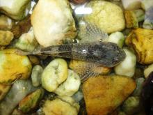 Espèce protégé. Couleur brun à gris, marbré de taches sombres et a un ventre blanc sale. Corps épais à l’avant avec une large tête plate et des yeux rapprochés. C’est un poisson de fond, dans les eaux courantes et fraîches. Se nourrit de petits invertébrés du fond, insectes et crustacés. Pendant la période de reproduction, le mâle aménage un espace pour la centaine d’œufs rosés à jaunes. Il les gardera pendant 3 à 4 semaines. Les larves se nourrissent comme l’adulte, des larves d’insectes et des crustacés.