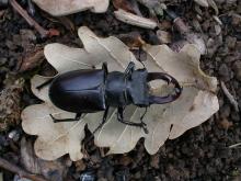 Espèce protégé. Mâle a la tête très large par rapport à la femelle, et porte des mandibules comme des bois de cerf (qui lui sert pour l’accouplement et non pour l’alimentation), que la femelle a en plus petit. Habitat forestier, aime les vieux arbres où les larves passent toutes leurs vies (2 à 5 ans). L’accouplement se passe dans les arbres et peut provoquer des combats.