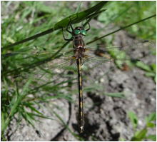 Espèce protégé. Yeux vert brillant, abdomen vert métallique et alignement de marques jaunes sur la face dorsale. Elle vit surtout près des cours d’eau courante et stagnante. La larve vit dans les débris végétaux.
